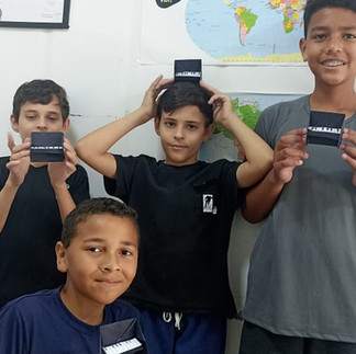 Descrição: as crianças construíram um piano utilizando dobradura de origami