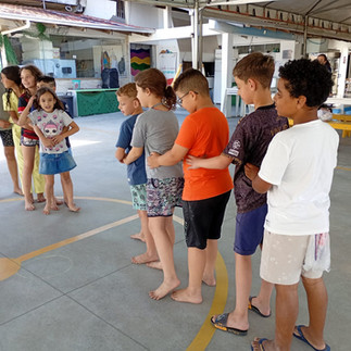 REGISTRO: Roda de conversa sobre a importância de viver em uma sociedade livre do preconceito e do racismo contra pessoas negras. As crianças participaram de brincadeiras originárias de países do continente africano.