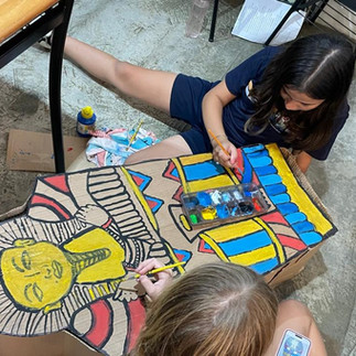 🏺 Criatividade e cultura!Também confeccionaram acessórios egípcios com materiais recicláveis para uma exposição cheia de história e imaginação! ✨♻️