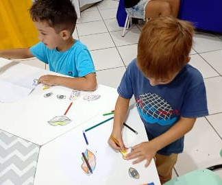 Atividade:A partir da observação da própria imagem refletida no espelho, cada criança montou um rosto, reconhecendo e percebendo o posicionamento correto de cada parte facial, fortalecendo a noção de identidade e individualidade.