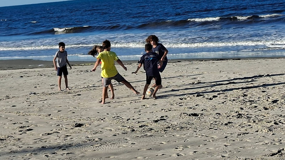 🔤 Dinâmica de anagrama com palavras como Autoridade (valores e reflexão)⚽ Momento recreativo com jogos na praia