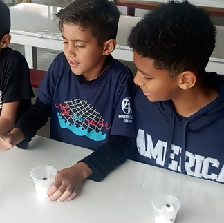 🫘 Atividade: Plantio de feijão📖 Descrição: As crianças realizaram o plantio de feijão em copinhos de plástico com algodão, regaram e deixaram os copos ao sol, acompanhando de perto o processo de germinação e crescimento das sementes.